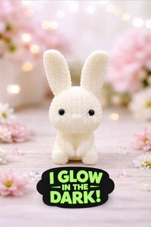 3D Printed Crochet Style Glow-in-the-dark Bunny, Knit Design Easter and Spring Rabbit Decor
